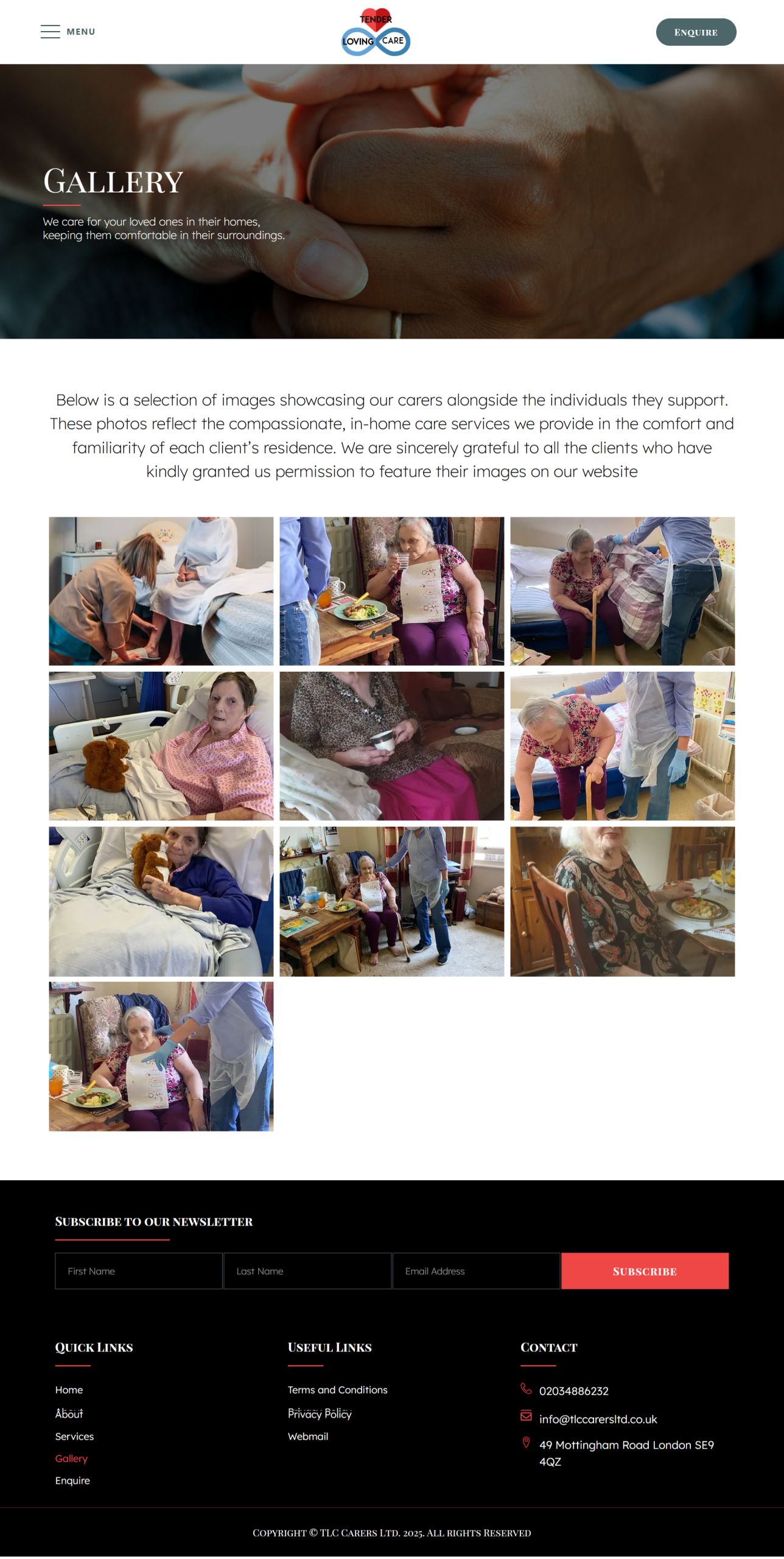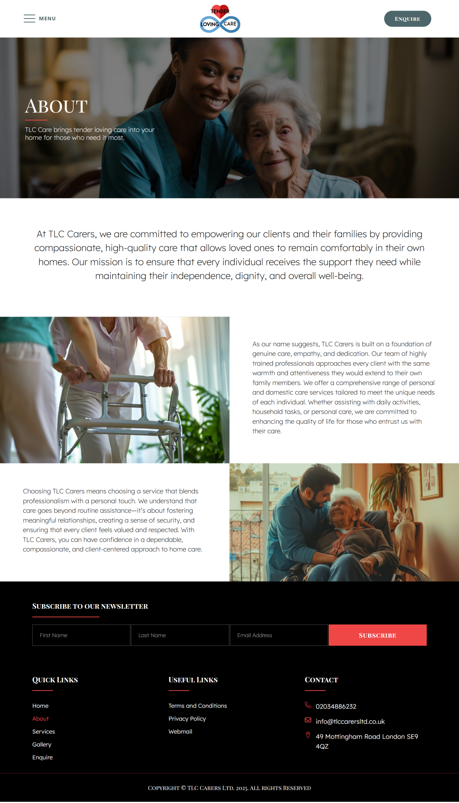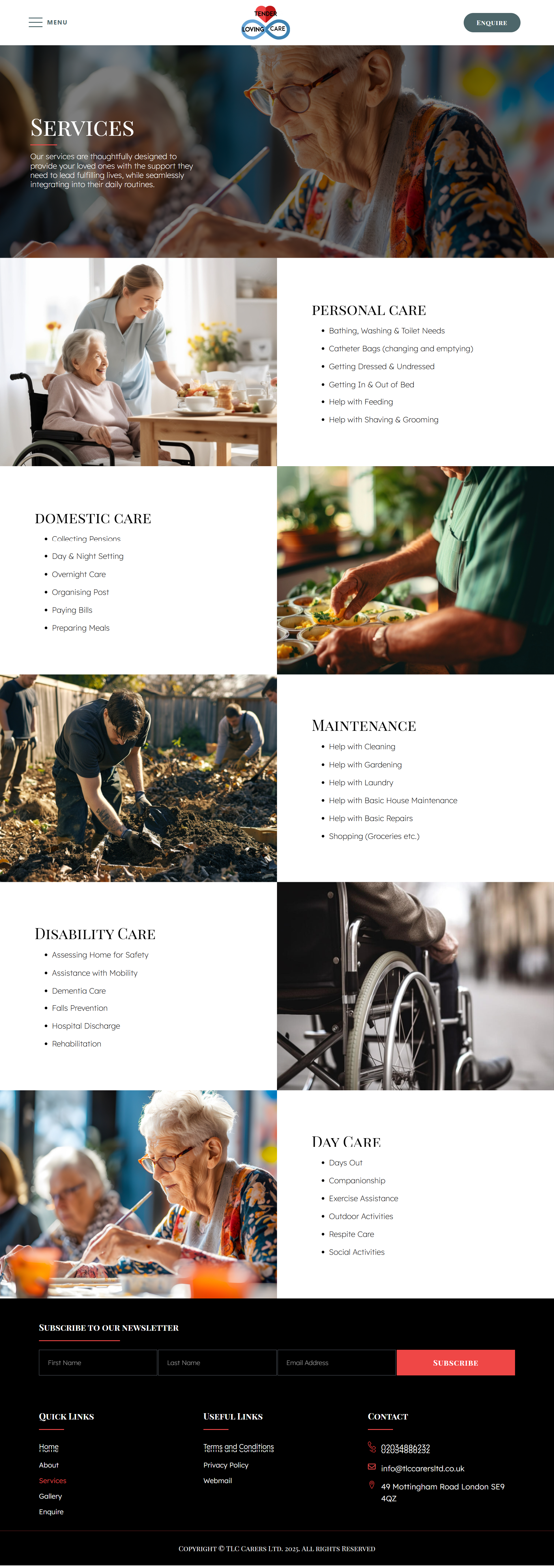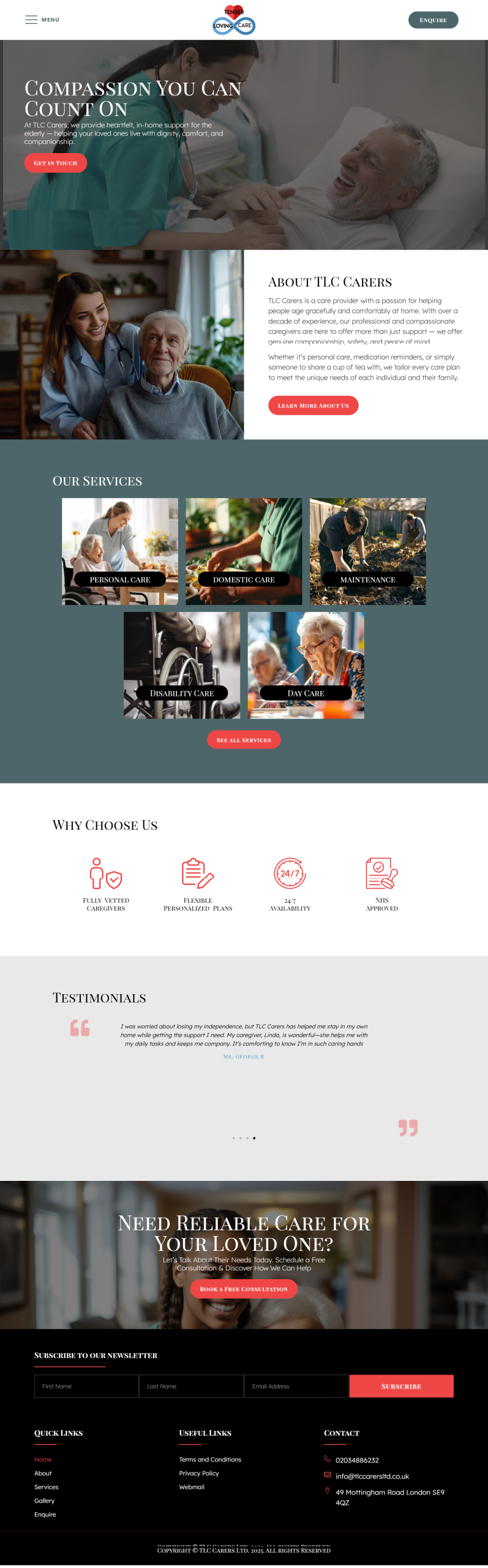 TLC Carers Ltd provides essential, compassionate care to vulnerable individuals in their homes. However, their old website did not reflect the high level of professionalism and kindness their team delivers every day. It felt unprofessional, struggled to attract visitors, and made it difficult for families in stressful situations to find the clear, reassuring information they desperately needed.