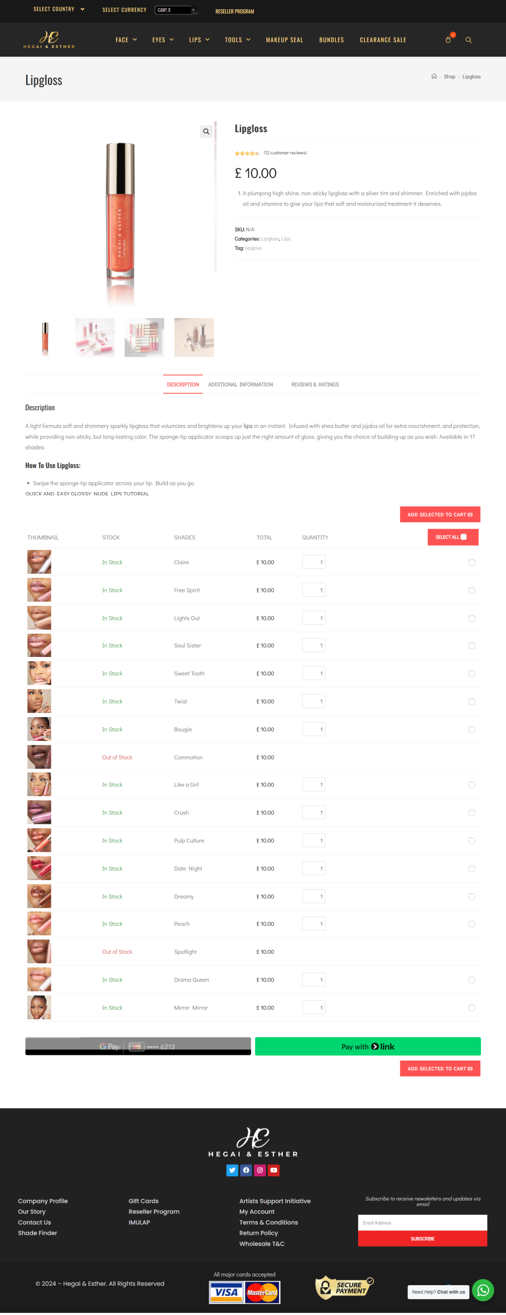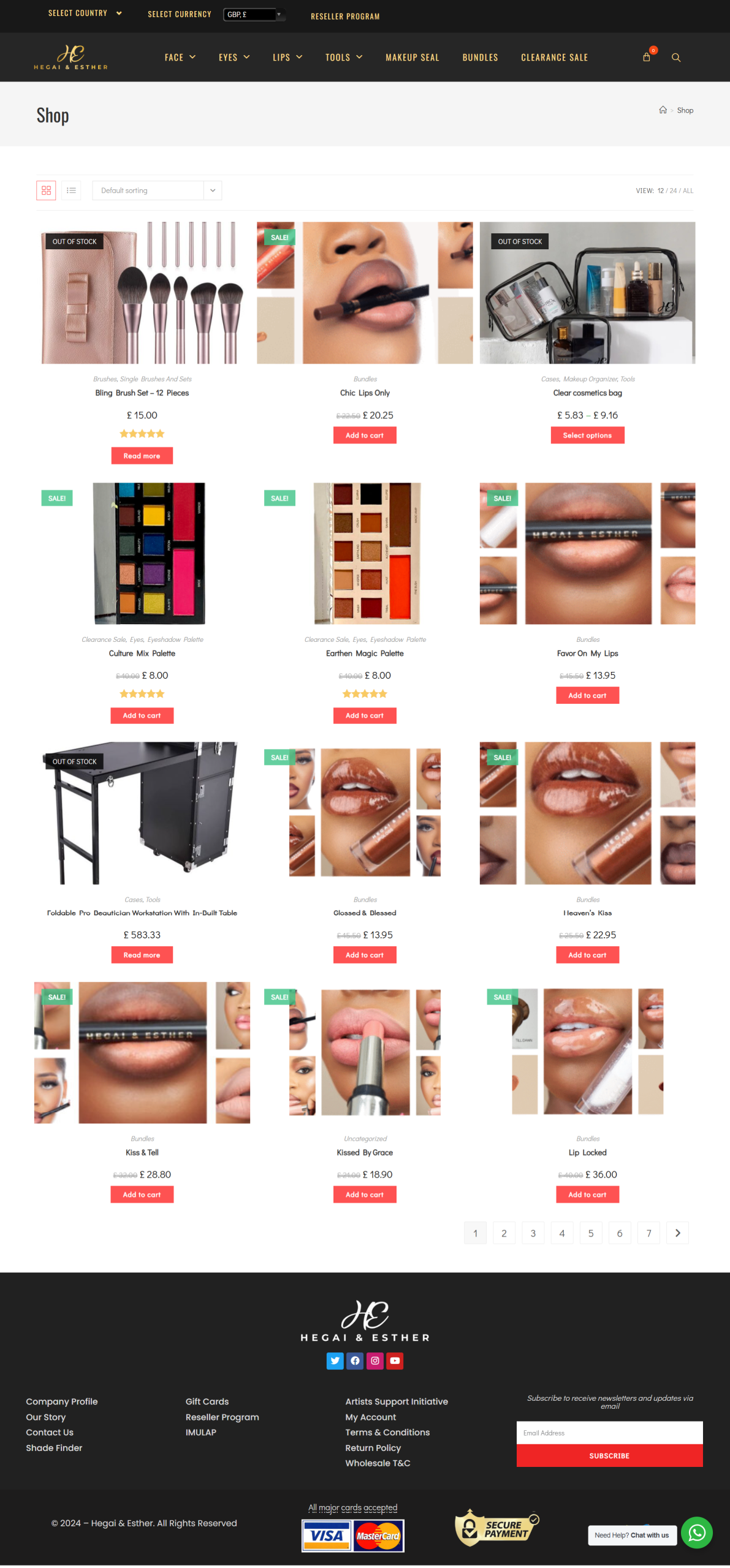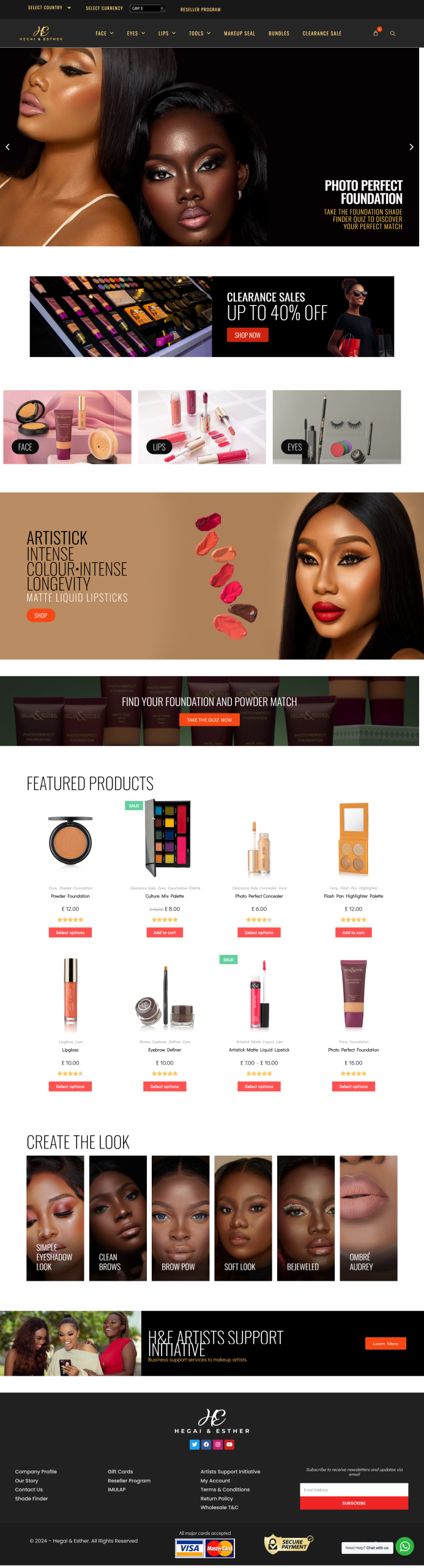 The Hegai & Esther e-commerce site provides a clean, visually engaging experience, with tools like the shade-finder designed to increase customer confidence and conversion rates.