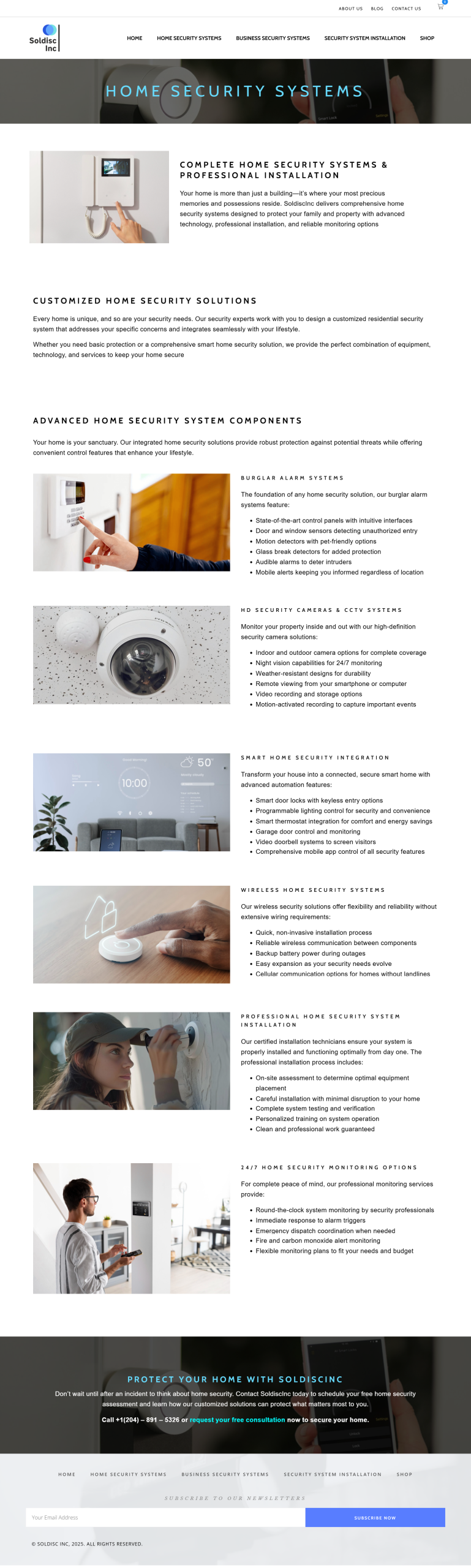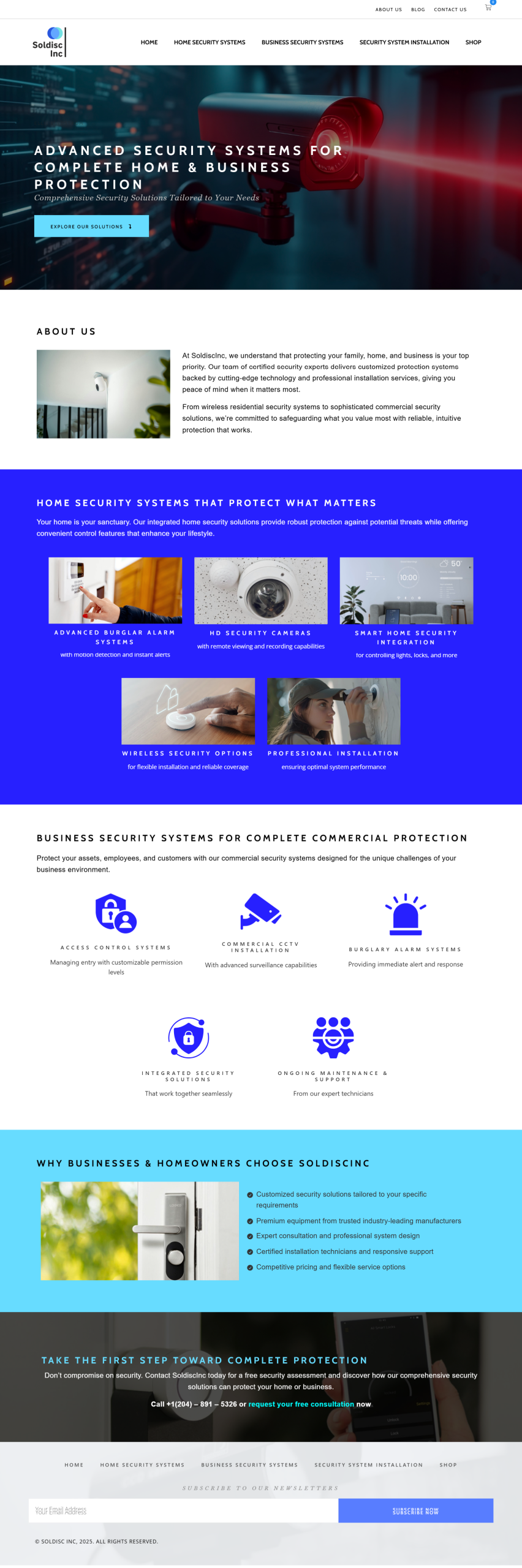 Soldisc Inc provides sophisticated, tailored security systems for both homes and businesses. However, their previous website didn’t reflect the high-tech, trustworthy nature of their services. It was difficult for visitors to differentiate between residential and commercial offerings, understand the full range of solutions, and take a clear next step.